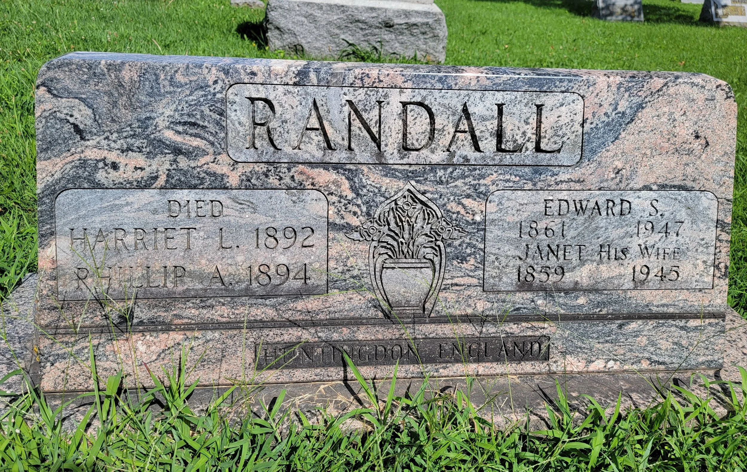 The Randalls have a plot in Nokomis Cemetery with a very handsome headstone. Etched into the bottom of the stone are the words “Huntingdon, England” as a reminder to later generations of the family’s origins.